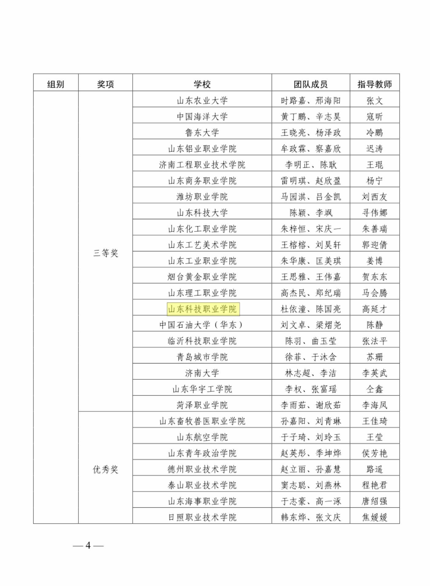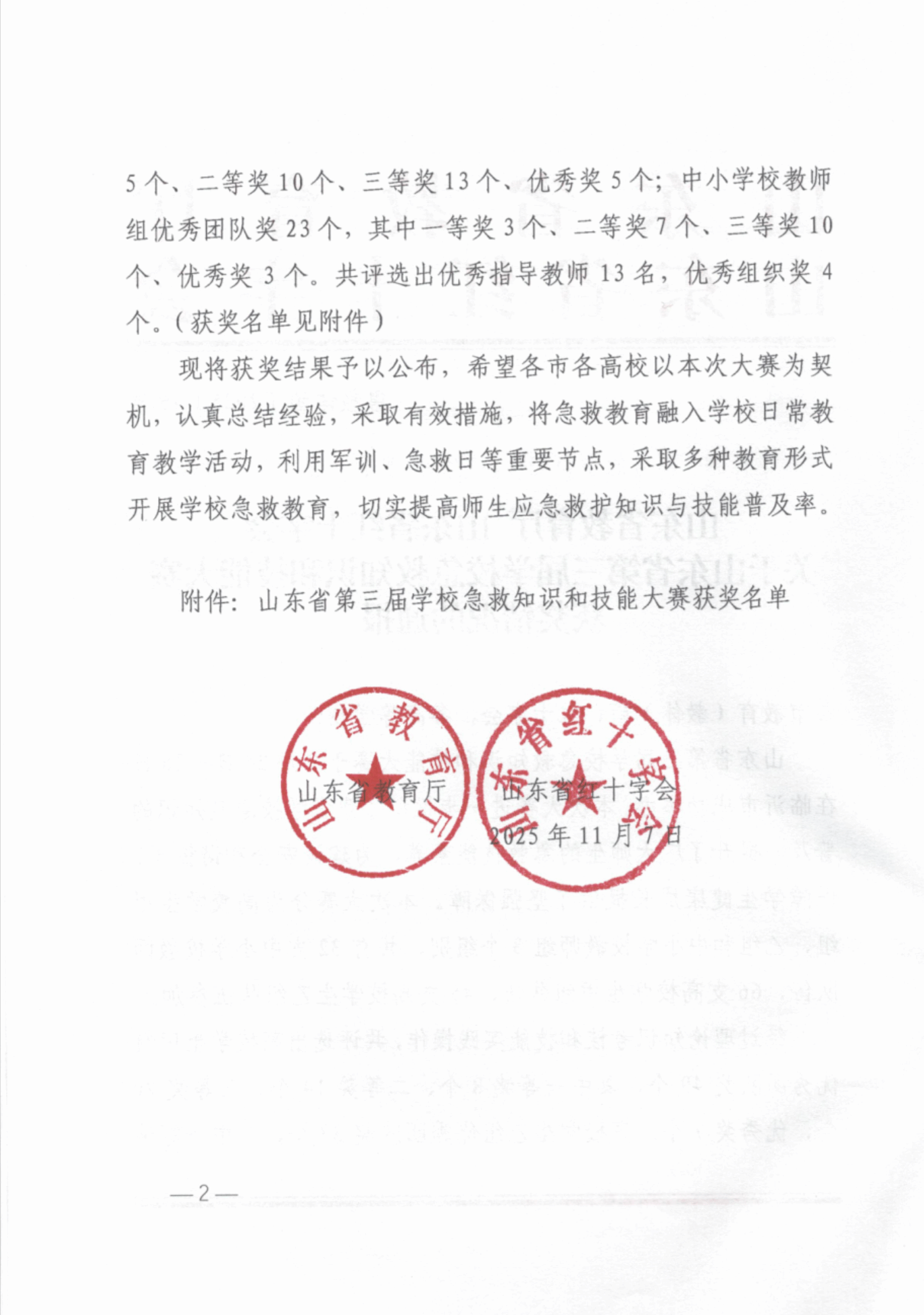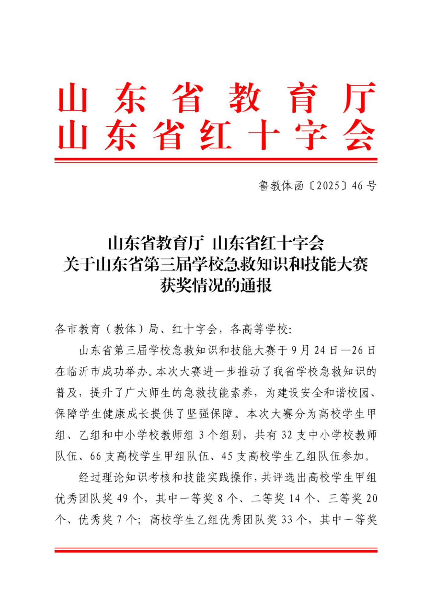 学校荣获山东省第三届学校急救知识和技能大赛优秀团队(三等奖)