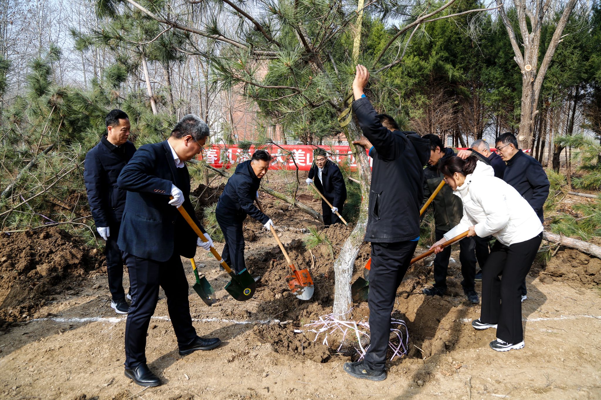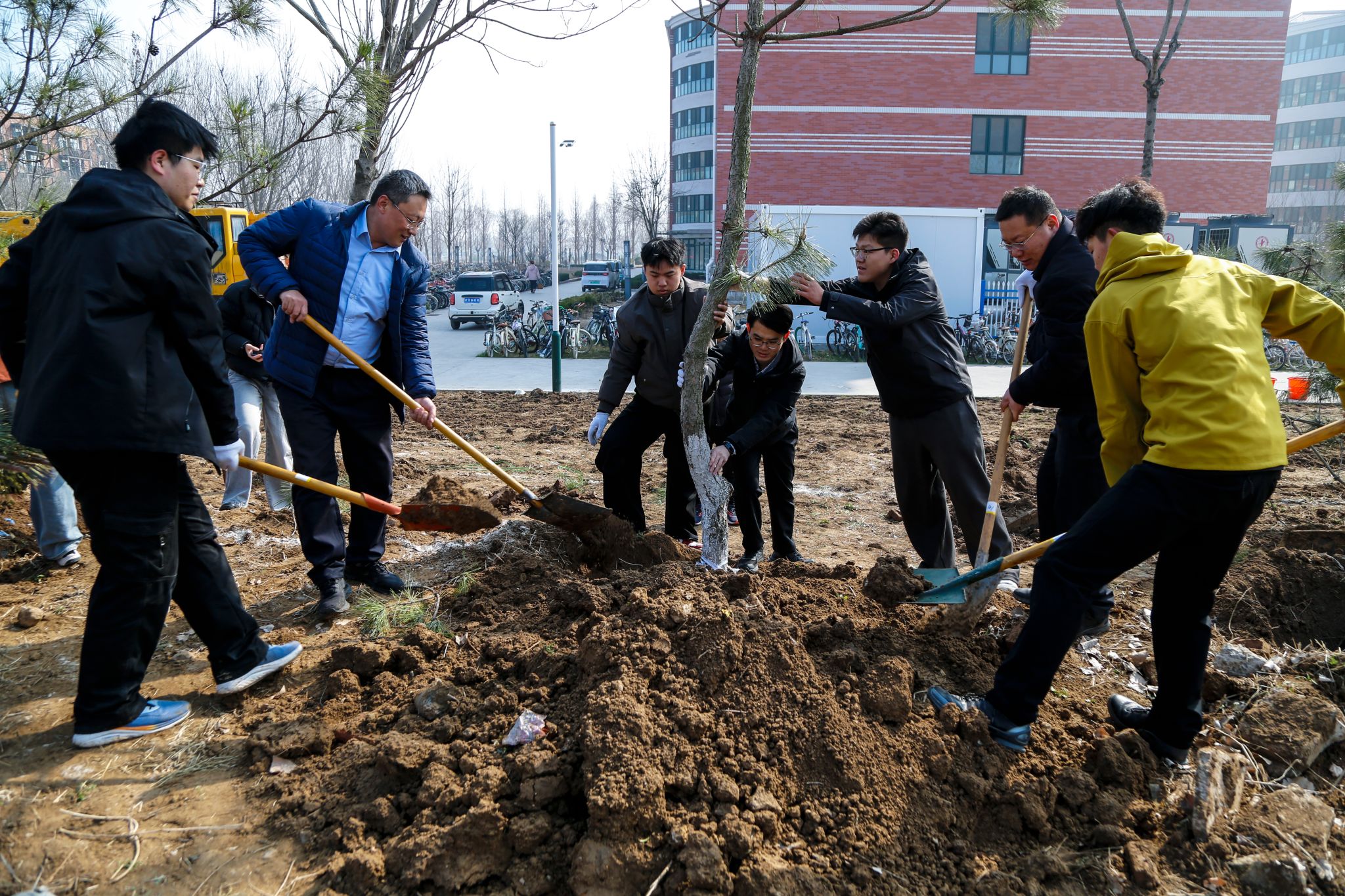 活动现场秩序井然,师生们分工协作、配合有序,扶苗、培土、压实、浇水,各环节衔接顺畅,充分展现出我校师生团结协作、实干笃行的良好风貌。大家以躬身实践的方式,将生态文明理念根植于心、践之于行,为春日校园增添新绿。